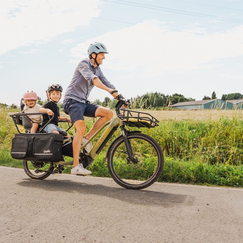 Le Babboe City Mountain électrique est équipé en standard d'un banc, ce qui permet d'accueillir deux enfants. Vous pouvez équiper le Babboe City Mountain d'un banc supplémentaire, ce qui vous donne quatre sièges.